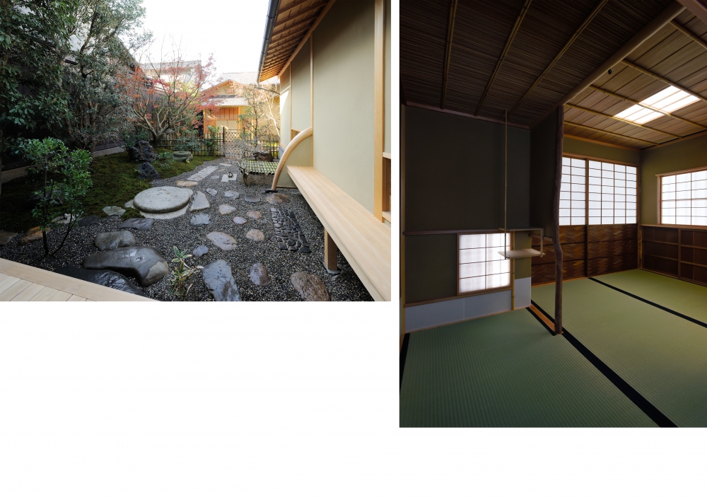 岩崎建築研究室がこれまでに手がけた茶室や住宅、店舗の写真や図面、模型を展示。