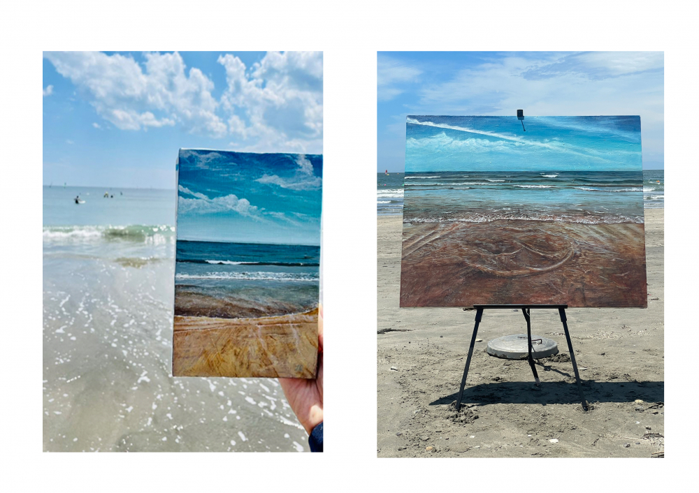 描いている理由は 東京の葛西臨海公園の海が私にとっての「海」でした。