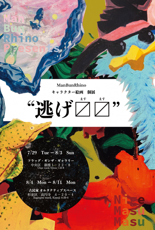 ManBunRhino キャラクター絵画個展 "逃げ〼〼” 7月29日(火) ~ 8月3日(日)