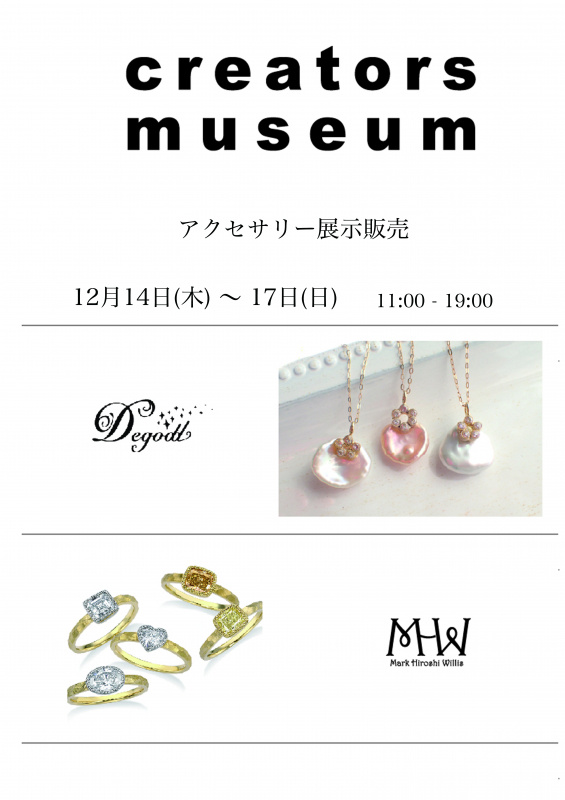 creators museum アクセサリー展示販売 12月14日(木) 〜 17日(日)